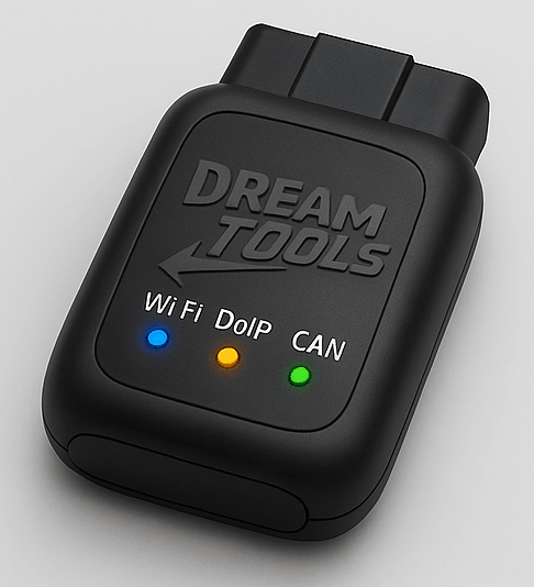 We are pleased to present a device that enables completely wireless operation in car diagnostics. Our device works even with the latest Ethernet diagnostic protocols, also known as DoIP, with brands such as BMW, Audi, VW, Skoda, Seat, and many others. This enables very fast diagnostics because Ethernet 100 Mbps is almost 200x faster than CAN, which typically uses a speed of 0.5 Mbps.